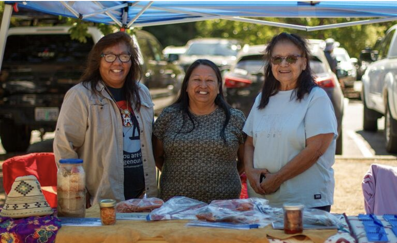 Photo: Wasq’u teachers Radine “Deanie” Johnson, Valerie Switzler, and Doris “Teeny” Miller showing how to prepare salmon in different ways. Photo by Jarrette Werk, Underscore News + Report for America.