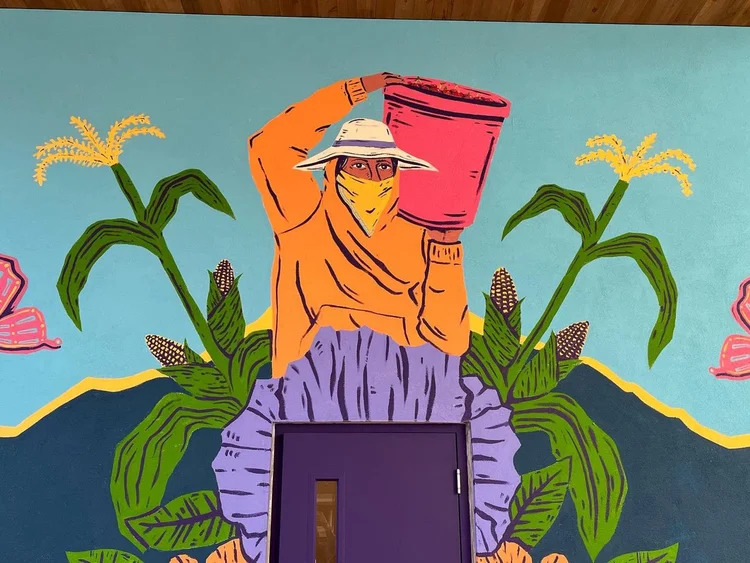 In a new, site-specific installation for High Desert Museum, Boise, Idaho, based artist Miguel Almeida shares vibrant murals, large scale sculptures and hand drawn animations, offering a window into the daily lives of the people that harvest the fresh fruits and vegetables bound for our local markets and dinner tables.